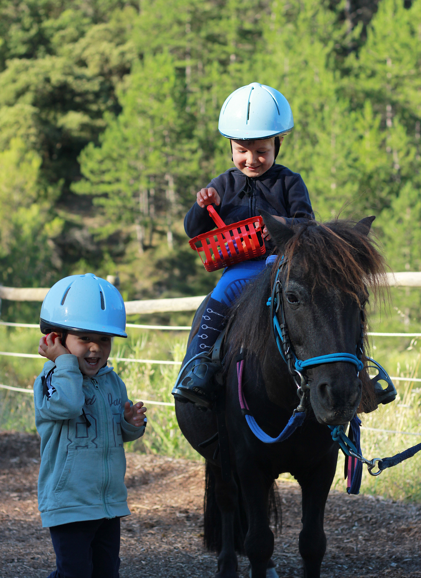 Accompagné d’un parent et à travers le jeu, ses interactions avec le poney l’invitent en douceur et dans la gaîté à développer une relation complice avec le vivant et prendre confiance en lui.